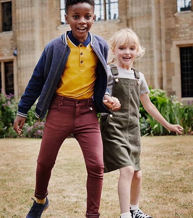 Kids look absolutely brilliant in bright colours, but if you want to keep the look classic, go for autumnal shades (navy, deep red, bottle green, mustard yellow and rust). An added bonus: these colours don't show up dirt as much.